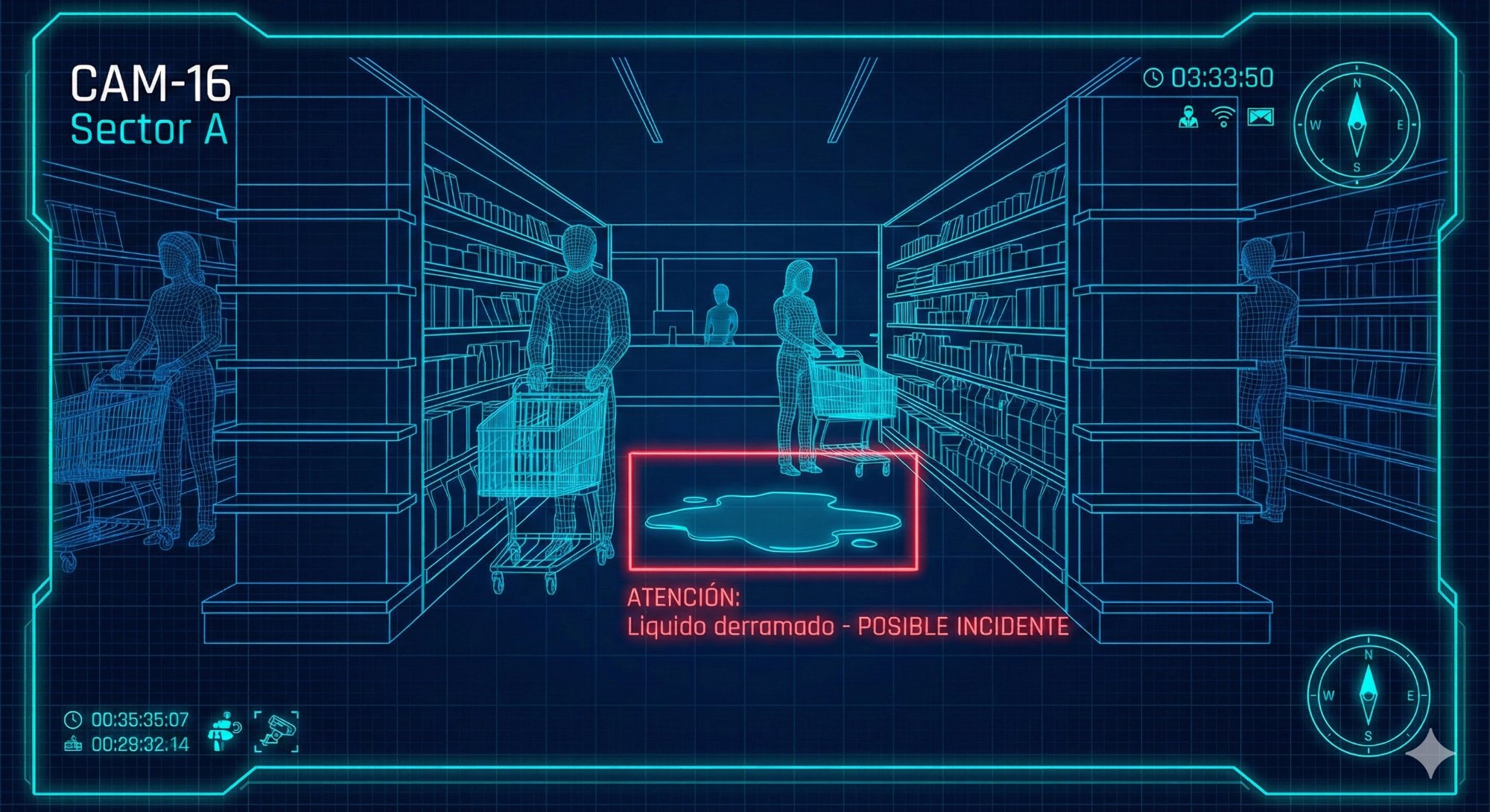 Convertimos cada cámara de seguridad en un analista inteligente que trabaja 24/7. Detección de conductas sospechosas, conteo de personas, análisis de flujos, verificación de EPP, control de accesos indebidos y mucho más — todo en tiempo real.