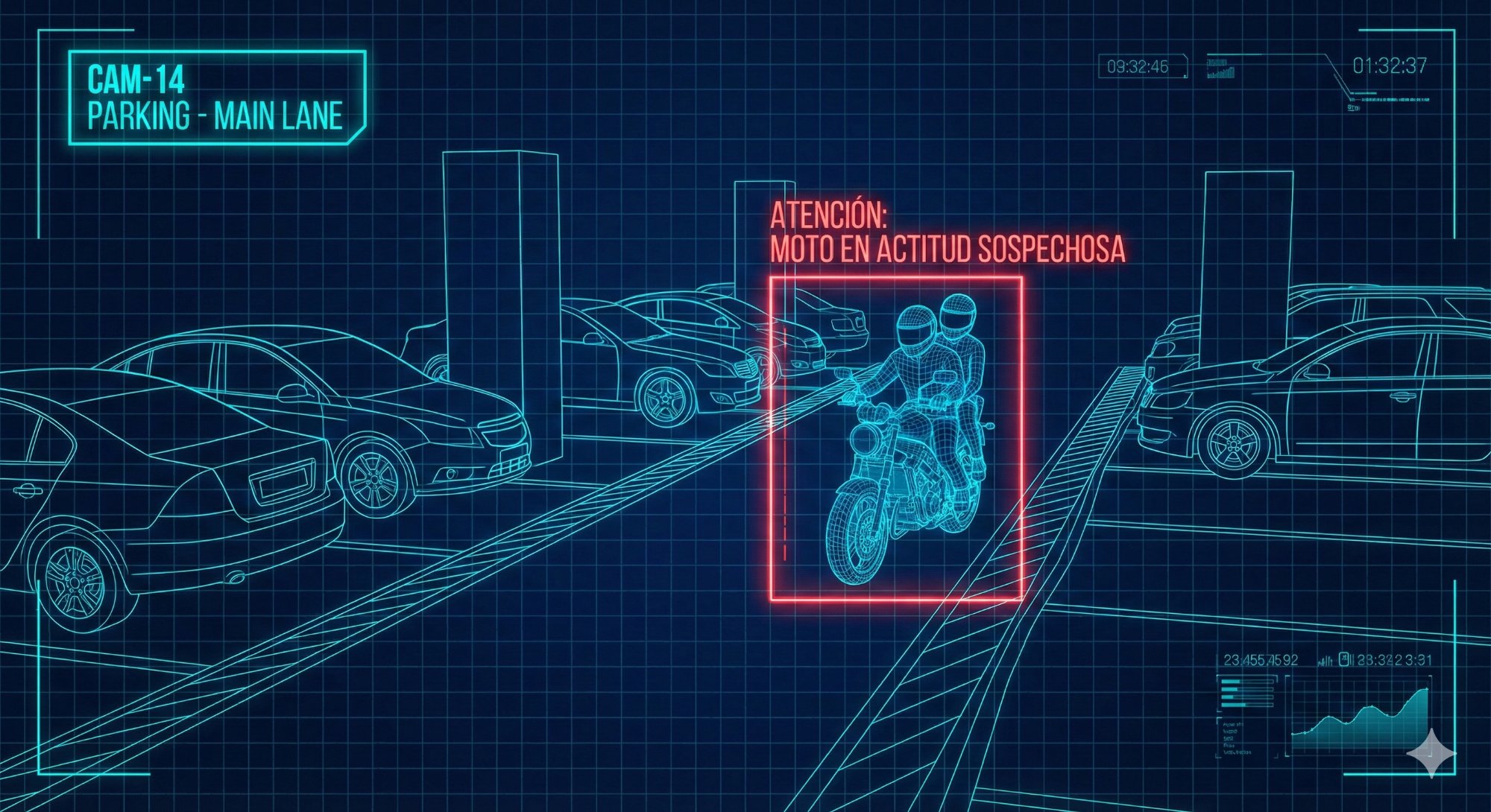 El sistema procesa los feeds de video en tiempo real, detecta eventos relevantes para tu operación, genera alertas automáticas y produce reportes que transforman la seguridad en una herramienta de gestión operativa.